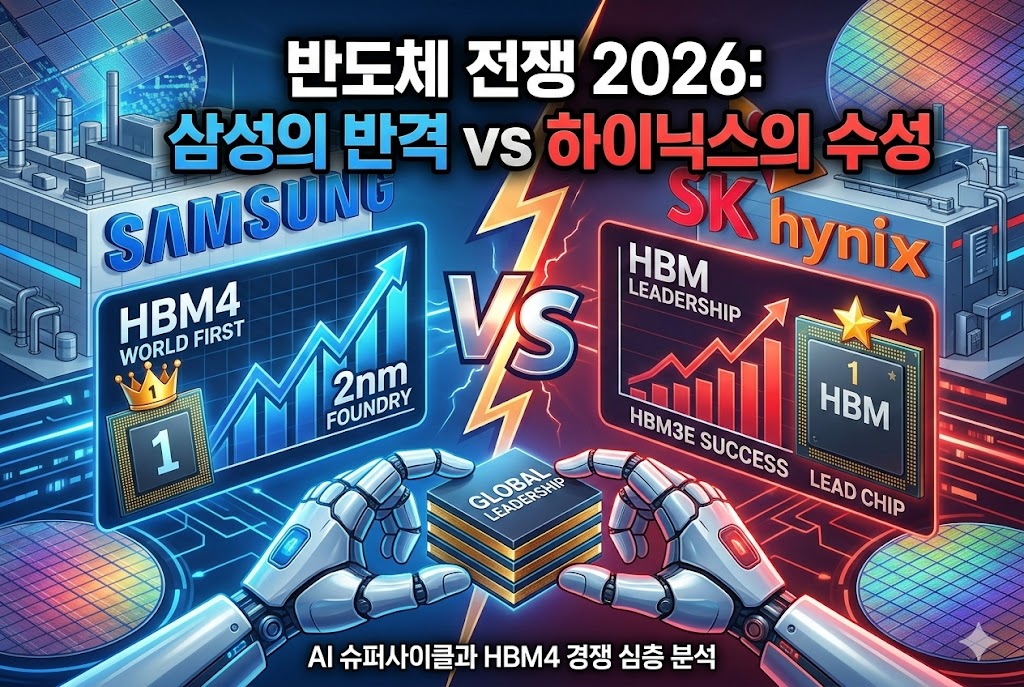 2026년 글로벌 반도체 시장은 AI 슈퍼사이클과 함께 HBM4 주도권 다툼으로 뜨겁습니다. SK하이닉스가 HBM3E 시장을 선점하며 DRAM 점유율 역전을 이뤄냈으나, 삼성전자가 세계 최초 HBM4 양산 출하와 2nm 파운드리 공정으로 대반격을 시작했습니다. 양사의 기술 혁신은 대한민국 경제의 새로운 전성기를 견인할 핵심 동력입니다. 💡